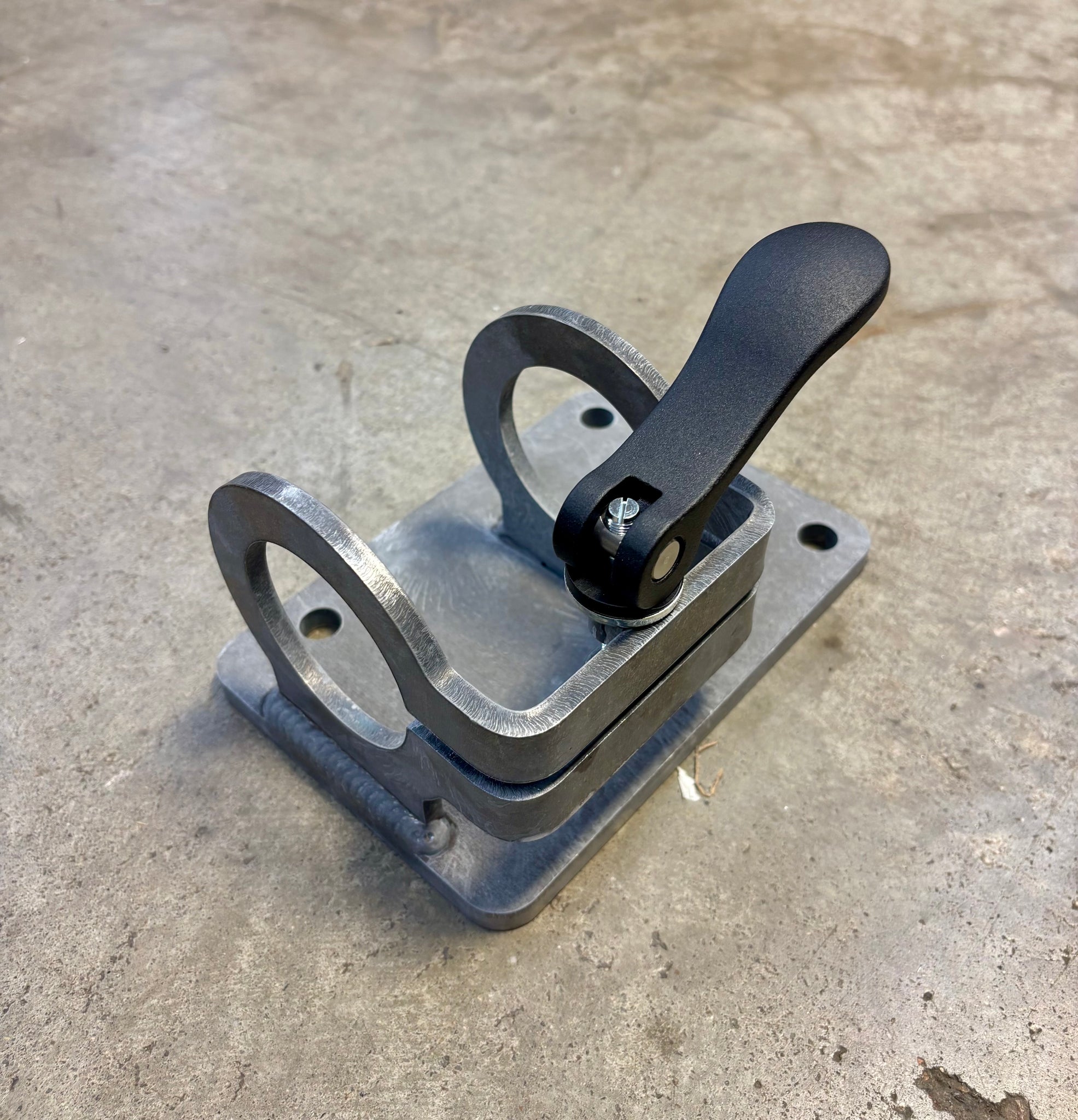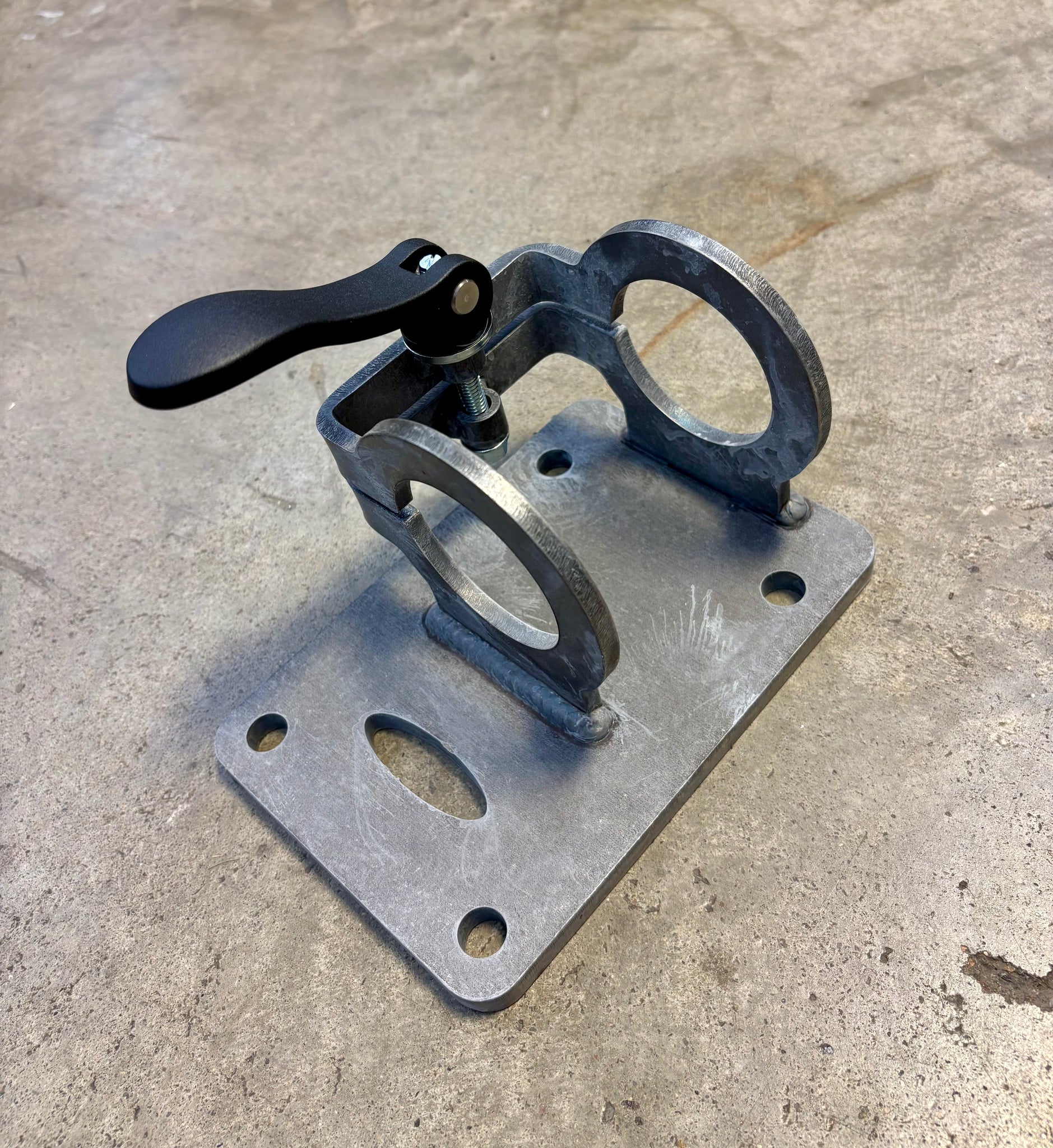 These are laser cut steel with a beefy 3/8" base, and 1/4" CNC formed upright clamp.  They use a high quality adjustable cam style clamp to pinch on the full perimeter of the tube.  This will hold MUCH better than a typical single pinch bolt style clamp.